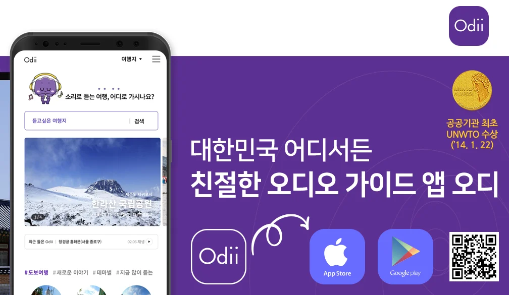 앱을 다운로드하여 설치하면 관광지에 대한 자세한 설명을 오디오 가이드 앱 '오디'가 친절한 설명을 해줍니다.