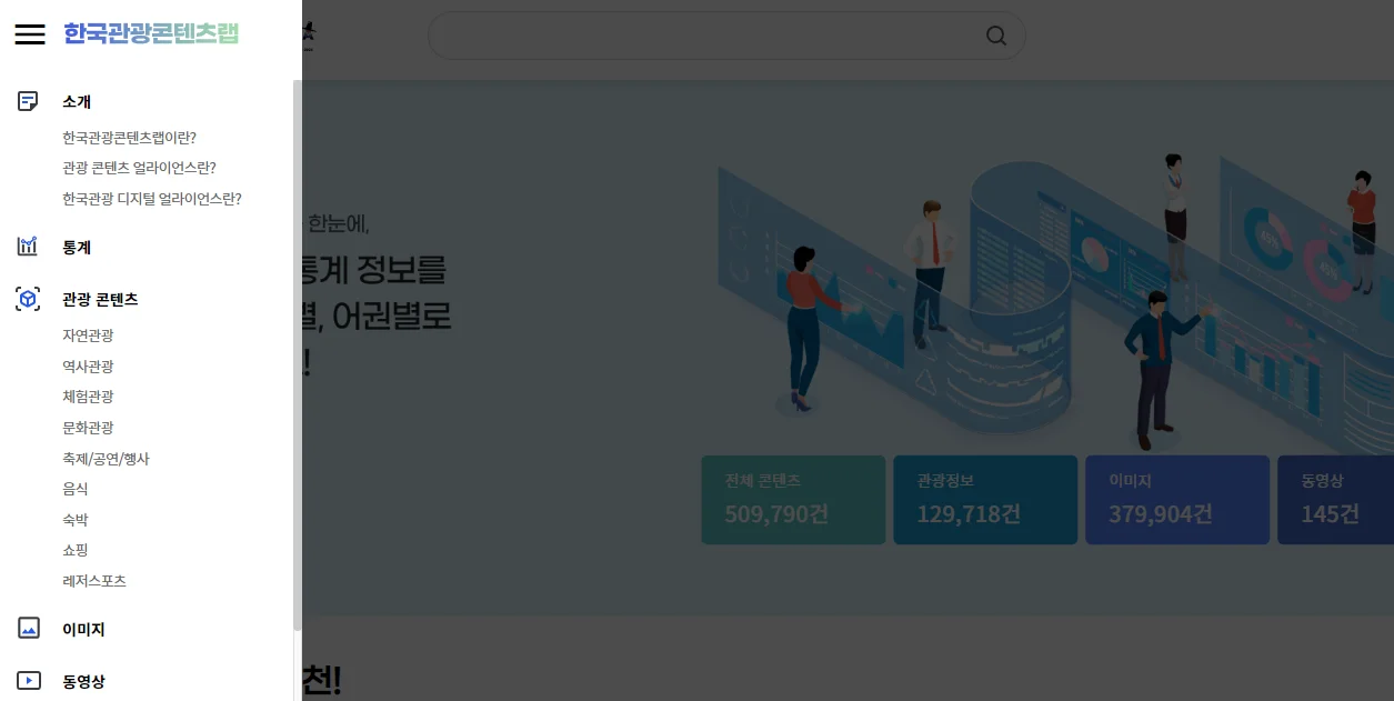 한국관광콘텐츠랩은 문화관광, 축제/공연/행사, 음식, 숙박, 쇼핑, 레저스포츠 등에 대한 기사, 이미지, 동영상 등 다양한 자료를 제공합니다.