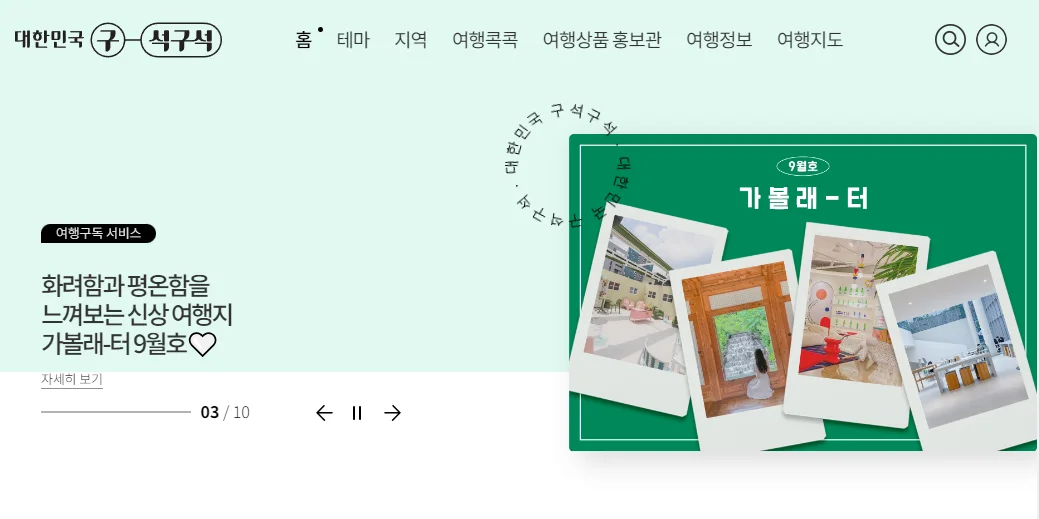 대한민국 구석구석은 국내 관광안내의 끝판왕입니다.